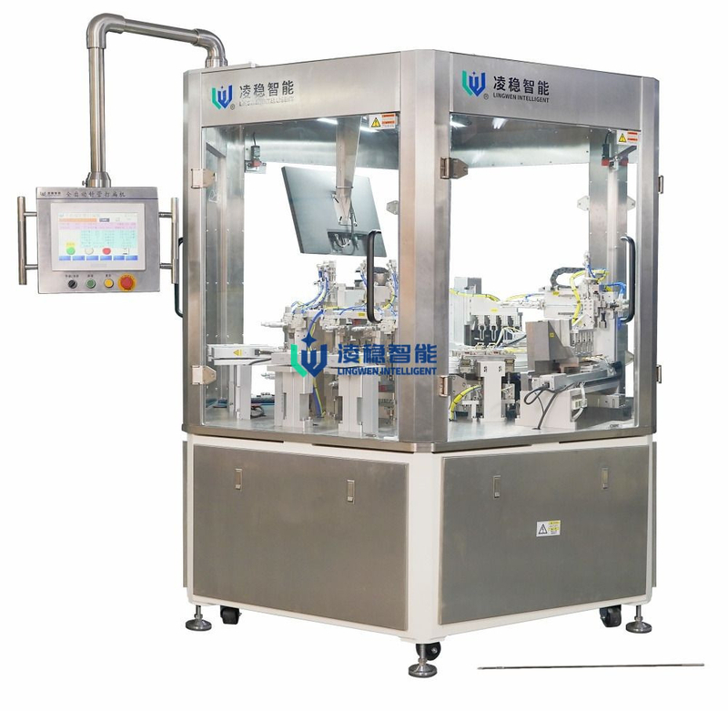 Dengan mesin Crimping Jarum Kanula Safety IV, , peralatan dapat secara otomatis menyelesaikan pemosisian jarum, perataan, pengujian, dan proses lainnya,